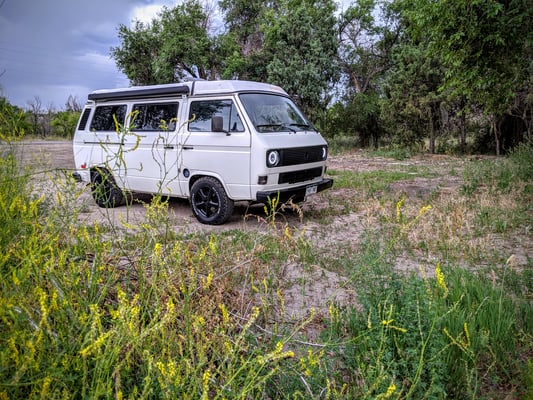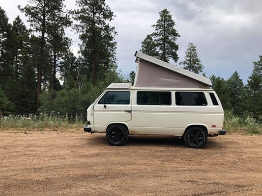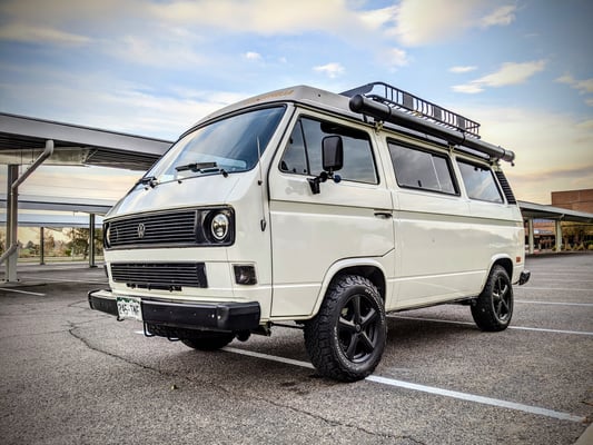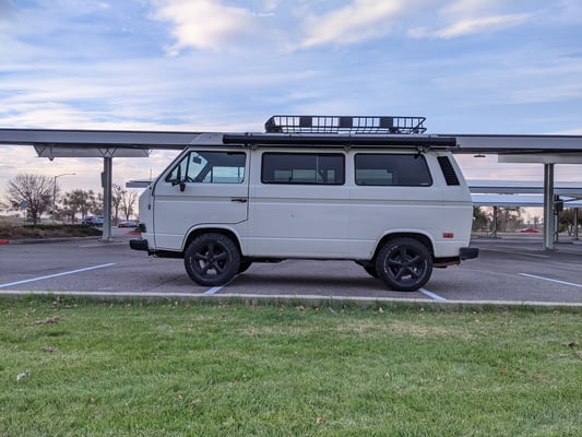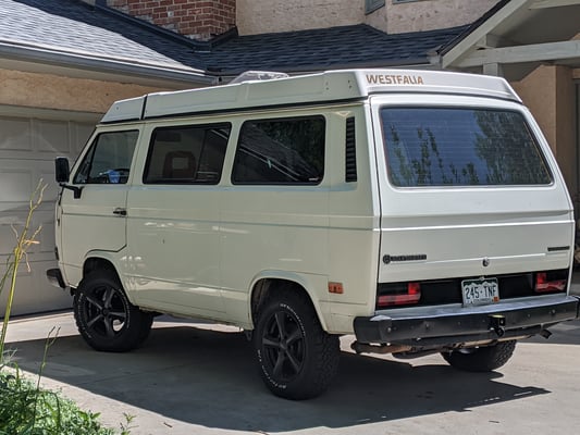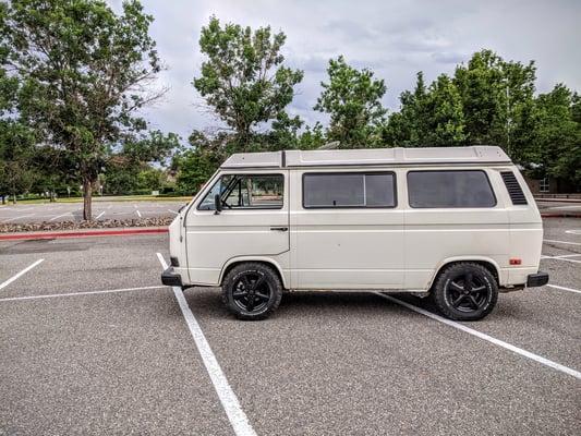 As much as I liked the look of the EMPI wheels on the lowered vanagon, the ride was not great. Just too harsh with the stiff sidewalls of the BFGs, and that feeling that there is so much energy being compressed and decompressed in the stiff springs leading to an overall experience that wasn't relaxing. Don't get me wrong, it cornered like a beast, but just too many compromises.