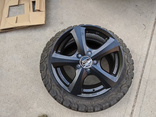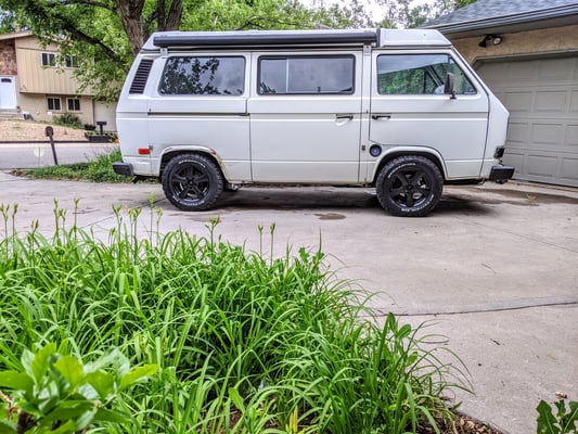 I ordered a single rim for a test fit. Not going all the way down the rabbit hole again without testing! It checked all the boxes. Looked good, fit up front without fouling the radius arm, fit at the back without fouling anything inside, or the sliding door.