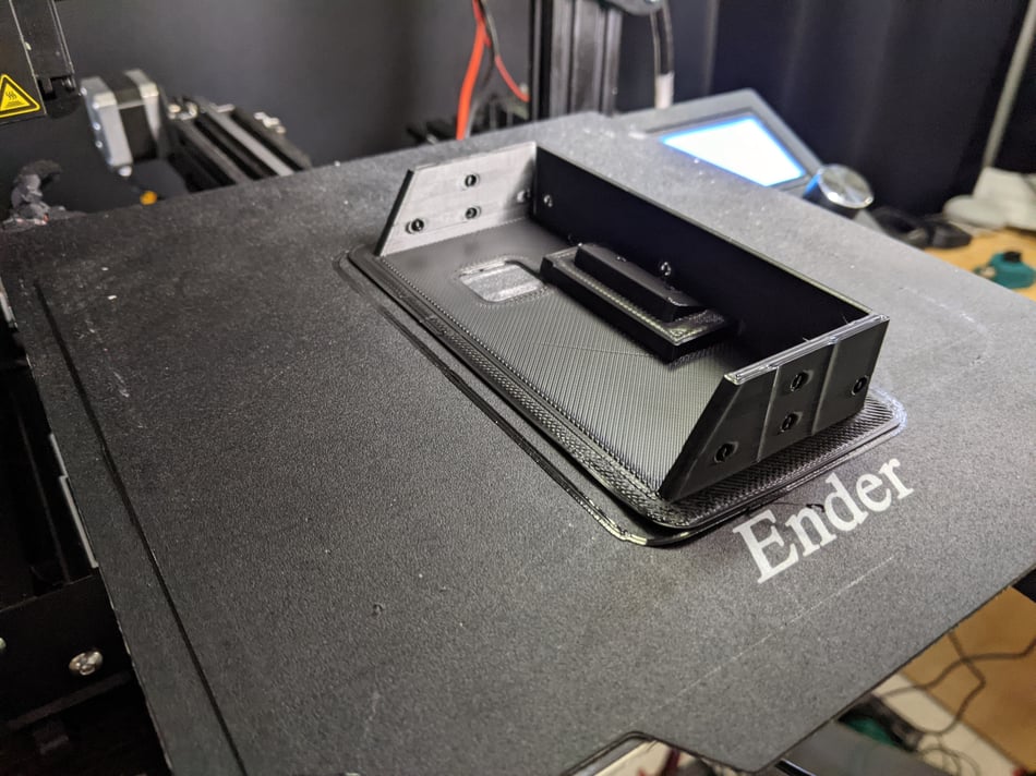 In the end this was the right decision because either the original design is off, or I've accidentally re-scaled it at some point because it's a good 5mm too narrow. I don't care. A bit or rhino tape and this will be good go to for my testing of the radio tomorrow. That's how it works. My magnetic bed cover is pretty beaten up at this point so anything printed flat on it ends up with imperfections on the mating surface. If / when I want something to be perfect, I print on a glass plate. That has it's own set of challenges, like getting the print to stick.. then unstick, but when it works, it really works.