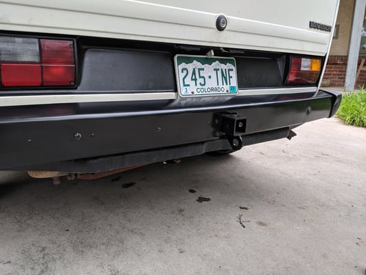 Now call me crazy, but I actually LIKE the minimalist lines of the stock bumpers, especially when they are painted black. For that reason, and to save a few dollars, I went with the VanCafe Hidden Hitch. I lurv it. You barely notice it's there, but it bolts 12 inches into the frame with 3 bolts each side - probably the same way that the RMW bumpers do.